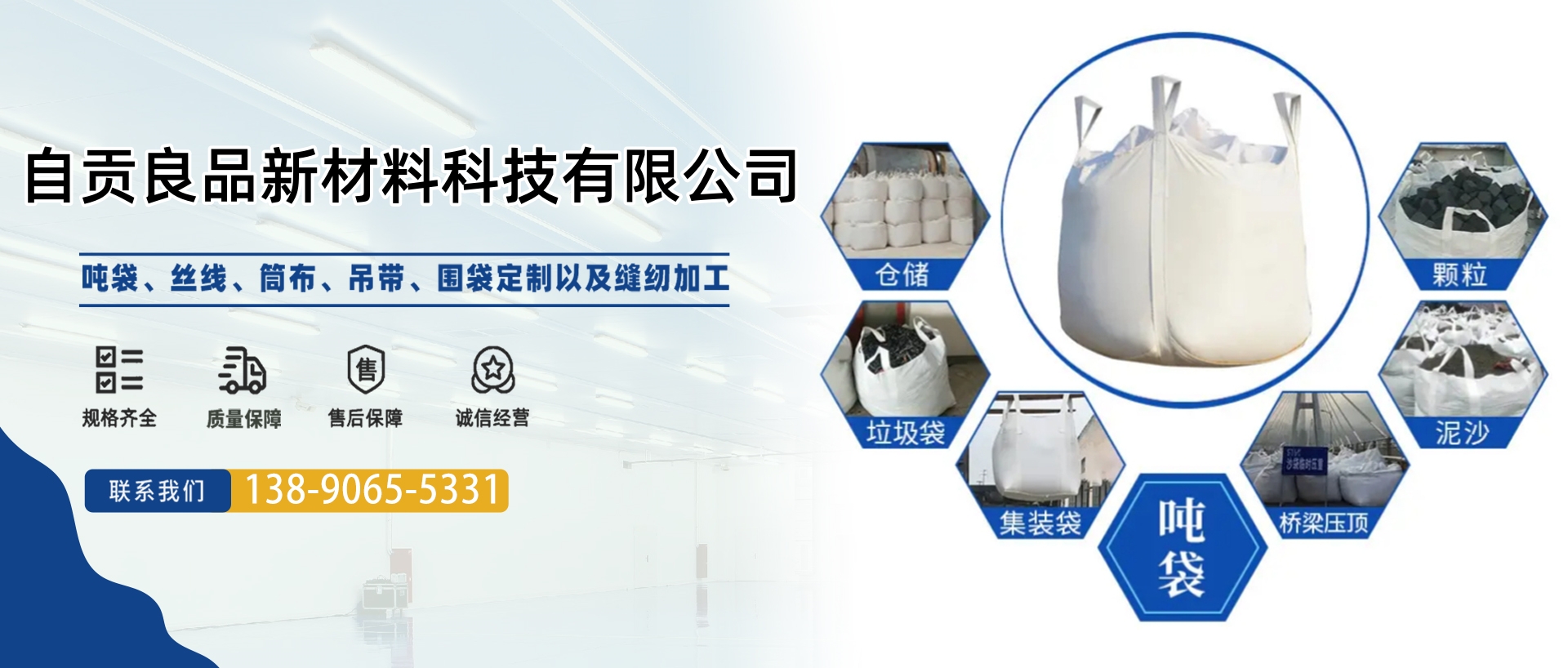 公司簡介 自貢良品新材料科技有限公司位于自貢市貢井區航空產業園B4-01-5地塊。成立于2020年4月,占地面積18余畝,生產車間面積約6000平米,目前一線員工百余人。我們專注于集裝袋的研發、設計、生產。產品包括圓形集裝袋、方形集裝袋、拉筋集裝袋、托盤袋、敞口集裝袋等各種定制集裝袋。公司秉持著誠信、創新、分享、拓展的價值觀,為客戶提供系統的包裝解決方案與服務。 業務領域 作為集裝袋行...